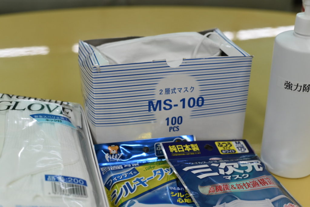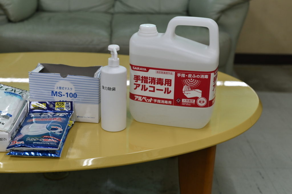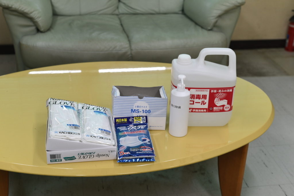 コロナウイルス対策として各運転手は除菌のためのアルコール洗浄・マスク・手袋の着用を行っています。