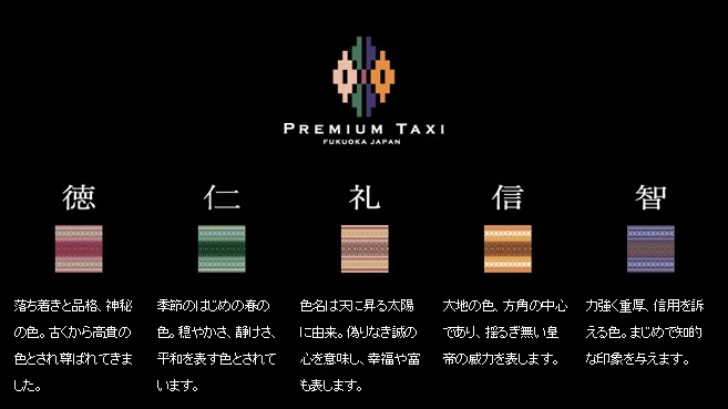 接遇や観光などの特別な講習を受講したドライバーが、福岡の伝統文化を象徴する博多織五色献上柄を配した黒塗りの車両で、ワンランク上のサービスを提供します。