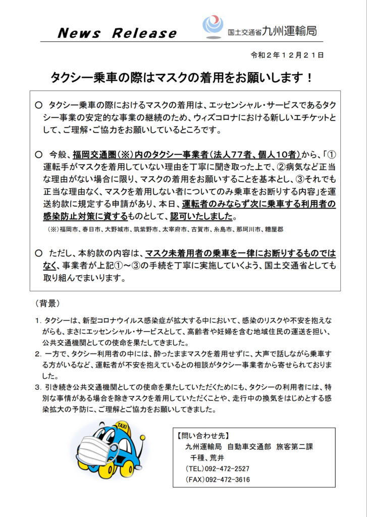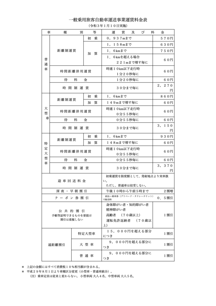 一般乗用旅客自動車運送事業約款の変更が行われました。